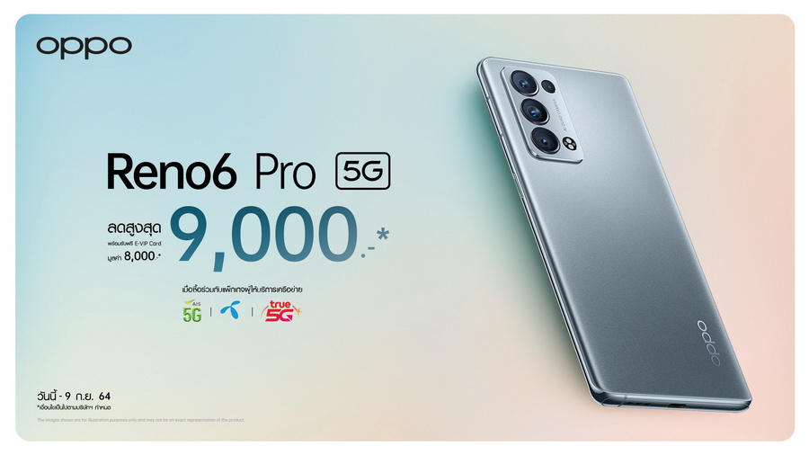 OPPO Reno6 Pro 5G สุดยอดสมาร์ทโฟนพอร์ตเทรตรุ่นท็อปใหม่ล่าสุด พร้อมวางจำหน่ายอย่างเป็นทางการวันที่ 26 สิงหาคมนี้ ในราคา 22,990 บาท OPPO ส่งโปรฯ สุดพิเศษ ให้คุณเป็นเจ้าของ OPPO Reno6 Pro 5G ก่อนใครได้แล้ววันนี้ ด้วยส่วนลดสูงสุดถึง 9,000 บาท! พร้อมรับของสมนาคุณมูลค่า 8,000 บาท