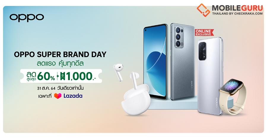 OPPO Super Brand Day ลดแรงสูงสุด 60% พร้อมคูปองลดเพิ่ม วันนี้วันเดียว ที่ Official Store บน Lazada