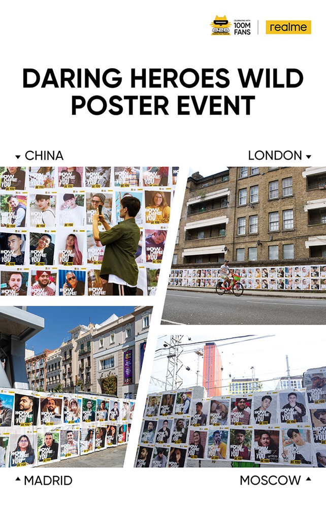 สำหรับงาน realme Fan Festival 2021 จัดขึ้นในแคมเปญ 'Daring Heroes Wild Poster Event' โดยแฟนๆ ทั่วโลกได้ส่งภาพถ่ายพร้อมบอกเล่าเรื่องราวที่แสดงให้เห็นถึงความกล้าในแบบฉบับของตัวเอง ในหัวข้อ 'How Dare You Be You' ซึ่งเป็นการสนับสนุนให้ทุกคนดำเนินชีวิตตามความคิดของตนเอง แม้จะต้องเผชิญกับการตัดสินใจที่ยากลำบากและปัญหาอุปสรรคต่างๆ ก็ตาม โดยภาพถ่ายที่แฟนๆ ส่งมานั้น ได้นำไปจัดแสดงใจกลางเมืองสำคัญของลอนดอน มอสโก มาดริด และเซินเจิ้น เพื่อส่งเสริมให้แฟนๆ ทุกคนเปลี่ยนเสียงภายนอกที่เป็นลบให้กลายเป็นพลังบวก