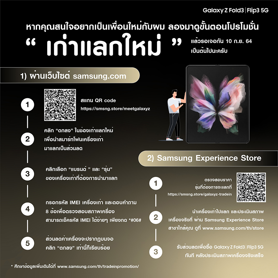 ติดต่อซัมซุง เพื่อรับข้อเสนอพิเศษมากมาย ได้ที่ https://smsng.store/meetgalaxyz จาก Z FOLD3 5G