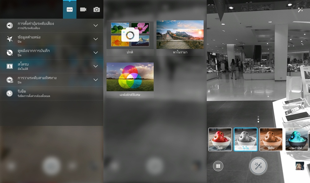 โหมดถ่ายภาพ โดยกล้องหลังให้ความละเอียดที่ 13 ล้านพิกเซล พร้อม Auto Focus และแฟลช LED ลูกเล่นแม้จะไม่เยอะ แต่ให้ครบทั้ง Effect HDR และการถ่าย Panorama การถ่ายภาพทำได้ดี คุมการไหวของภาพได้อย่างดี สีค่อนข้างธรรมชาติ ส่วนการถ่าย Video ทำได้ที่ 1080P