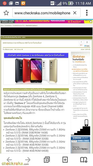 ความเร็ว 2.3GHz (RAM 4GB/ROM 32GB) ราคา 9,990 บาท (มีสีดำ, แดง, เงิน และทองให้เลือก) - Zenfone 2 ZE551ML ซีพียูรหัส Z3580