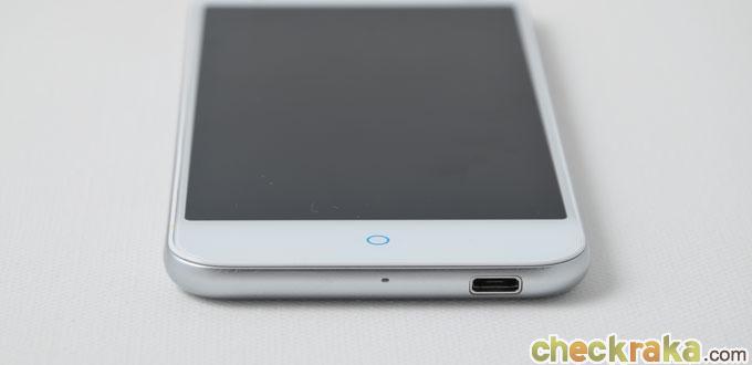ด้านหน้าตัวเครื่อง ด้านล่างของหน้าจอจะเป็นปุ่มแบบสัมผัส โดยแบ่งเป็นปุ่มกลางที่มีไฟ LED สีฟ้าคอยแสดงสถานะการทำงานหลักของเครื่องและเป็นปุ่ม Home ไปด้วยในตัว ส่วนปุ่มอีก 2 ข้างจะแบ่งเป็น Back อยู่ทางฝั่งซ้าย และเมนูอยู่ทางฝั่งขวา ขอบล่างตัวเครื่องจะเป็นช่องไมโครโฟน และช่องเสียบสายชาร์จหรือ USB