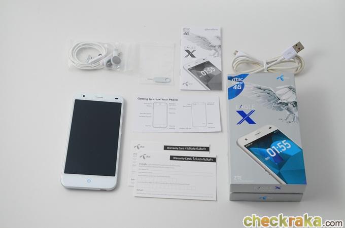 ตัวเครื่อง หัวอแดปเตอร์สำหรับชาร์จไฟ สาย USB / ชาร์จไฟ หูฟังสมอลทอล์ค คู่มือการใช้งาน ใบรับประกัน เข็มจิ้ม SIM อุปกรณ์ในกล่องค่อนข้างครบเลยทีเดียว Dtac Phone Eagle X 4G มาพร้อมกับตัวเครื่องแบบ Unibody คือฝาหลังขึ้นรูปชิ้นเดียว ไร้รอยต่อ ถือว่าทำออกมาได้ดีทีเดียว และมีขนาด 144 x 70.7 มม. และบางเพียง 7.7 มม. น้ำหนักเบา 132 กรัม สามารถจับใช้งานมือเดียวได้สะดวก ส่วนด้านหลังเครื่องบอกไว้ชัดเจนว่าเครื่องเป็นของ ZTE รุ่น Blade S6 Lite ซึ่งเป็นบริษัทที่ผู้ผลิตสมาร์ทโฟนได้มีคุณภาพ โดยทาง Dtac ก็ได้ให้ ZTE ผลิตเครื่องมาให้แล้วหลายรุ่น