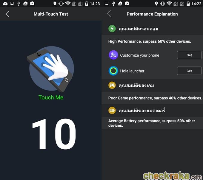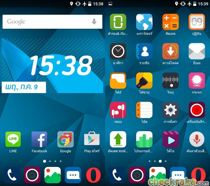 ข้อสังเกตคือ มือถือที่มาจากผู้ผลิตจีนส่วนใหญ่ จะใช้ Launcher แบบไม่มี App Drawer ทั้งนั้นเลย ข้อดีของการใช้งานอินเตอร์เฟสนี้ก็คือ ใช้งานง่ายไม่ยุ่งยาก สามารถเรียกแอปฯ จากหน้าจอหลักได้เลย ไม่ต้องเสียเวลาเข้าไปที่เมนูอีกที และเมื่อปัดจากขอบด้านล่างขึ้น จะสามารถเปลี่ยนภาพวอลล์เปเปอร์, เอฟเฟกต์การเลื่อนหน้าจอ และเมนูการตั้งค่าได้ทันที