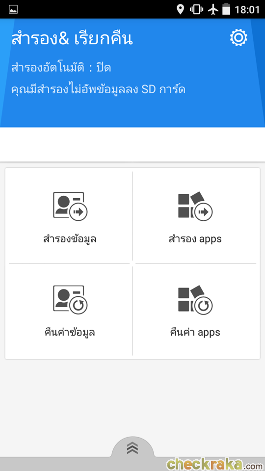 Backup & Restore เราสามารถ backup ข้อมูลเก็บไว้ในเครื่องแบบออฟไลน์ได้ผ่านทางแอปพลิเคชั่นนี้ ข้อมูลที่จะ backup สามารถเลือกได้ทั้ง Contacts, SMS, ค่า Settings ของระบบ, Wallpaper และอื่นๆ นอกจากนั้นยัง backup แอปฯ และข้อมูลของแอปเก็บไว้ได้ด้วยการ backup โดยสามารถตั้งเวลาไว้ได้ตามต้องการ