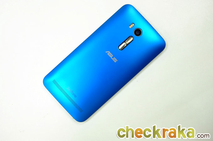 ด้านหลังของตัวเครื่องมีกล้องหลัง 8 ล้านพิกเซล พร้อมแฟลช Dual Tone