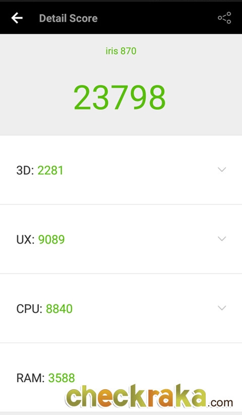 ผลการทดสอบประสิทธิภาพความเร็วด้วย Antutu Benchmark ได้ 23,798 คะแนน