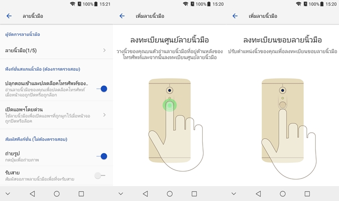 ZTE AXON 7 Mini สามารถเลือกสแกนลายนิ้วมือได้ 5 ลายนิ้วมือ ใช้งานสำหรับปลดล็อกหน้าจอ และปลดล็อกนาฬิกาปลุก รวมทั้งเข้าถึงแอปพลิเคชั่นที่เราล็อกเอาใว้ ความแม่นยำทำได้ดีมากครับ เท่าที่ทดสอบมายังไม่เคยสัมผัสแล้วไม่ตอบสนองเลย นอกจากนี้เซ็นเซอร์สแกนลายนิ้วมือ ยังสามารถตั้งให้เป็นปุ่ม Shutter สำหรับตอนถ่าย Selfie หรือสัมผัสเพื่อรับสายโทรศัพท์ได้อีกด้วย