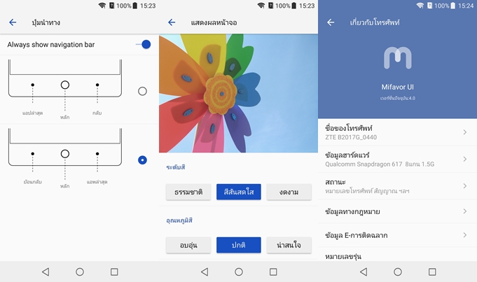ZTE AXON 7 Mini ทำงานบน Android 6.0.1 Marshmallow ครอบทับด้วย Mifavor 4.0 ซึ่งพัฒนาขึ้นมาจากช่วงแรกมากครับ หน้าตาของ UI สวยงาม แถมยังมีลูกเล่นมากมาย รวมทั้งการใช้งานยังรวดเร็วและลื่นไหลมาก น่าจะถูกใจคนที่ชอบสมาร์ทโฟนระบบ Android ที่มีลูกเล่นเยอะๆ