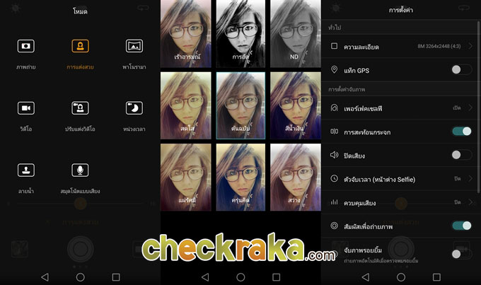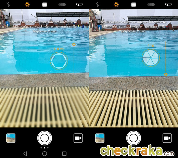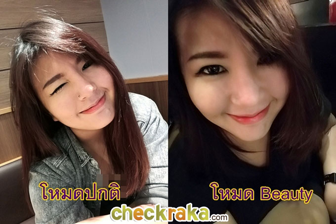 ในส่วนของกล้องด้านหน้าที่มีความละเอียด 8 ล้านพิกเซล, ขนาดรูรับแสงกว้างสูงสุดที่ F/2.4 และรองรับการถ่ายภาพวิดีโอที่ความละเอียดสูงสุดระดับ Full HD 1080p โดย Interface ยังคงคล้ายกับการถ่ายภาพด้วยกล้องด้านหลัง แต่จะไม่มีเมนูปรับรูรับแสงด้านบน เมื่อปัดนิ้วมาด้านขวาจะเป็นการเข้าสู่เมนูโหมดถ่ายภาพ ขณะที่การปัดนิ้วมาทางด้านซ้ายจะเข้าสู่เมนูการตั้งค่ากล้องถ่ายภาพ ซึ่งสามารถปรับ White Balance และค่า ISO ได้บ้าง แต่ไม่เท่ากับโหมด Pro ในกล้องด้านหลัง และที่ลืมไม่ได้คือโหมดถ่ายภาพแบบ Beauty ก็สามารถปรับได้ถึง 10 ระดับนั่นเองค่ะ