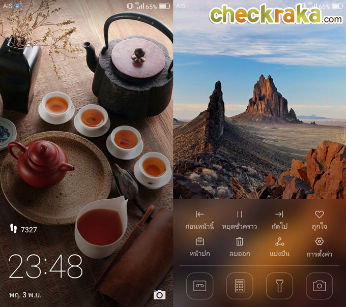 ที่พิเศษอีกอย่างหนึ่งคือ หน้าจอล็อคสกรีนที่สามารถเปลี่ยนวอลเปเปอร์ไปได้เรื่อยๆ โดยภาพแต่ละภาพเราสามารถใช้ภาพเราเองตั้งเป็นวอลเปเปอร์ก็ได้ นอกจากนั้นถ้าเราสไลด์จอด้านล่างขึ้นเล็กน้อย ก็สามารถเลือกเล่นเพลงได้ เลือกภาพล็อคสกรีนที่ชอบหรือเข้าถึงเมนูตั้งค่า เมนูบันทึกเสียง เครื่องคิดเลข ไฟฉาย และกล้องถ่ายภาพได้ทันที