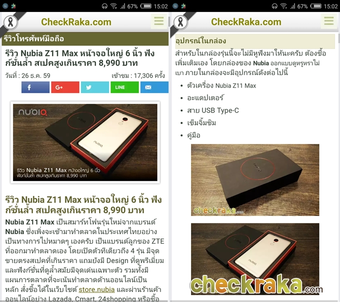 ในส่วนราคาของอยู่ที่ 14,990 บาท เท่านั้น ถือว่าเป็นรุ่นที่น่าสนใจ ราคาหมื่นกลางๆ แต่สเปคนี่เทียบเท่าสมาร์ทโฟนเรือธงรุ่น 20,000 ได้ไม่น้อย สำหรับช่องทางการจำหน่ายสามารถสั่งออนไลน์ผ่านเว็บไซต์หลักของ Nubia ได้เลย โดยยังสั่งผ่าน Lazada,Cmart และ 24 Shopping และในอนาคตทาง Nubia จะเพิ่มช่องทางให้ลูกค้าสั่งออนไลน์แล้วรับเครื่องได้ที่ 7-Eleven ได้อีกด้วยค่ะ