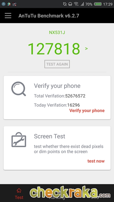 ผลการทดสอบประสิทธิภาพความเร็วด้วย Antutu Benchmark ได้ 127818 คะแนน