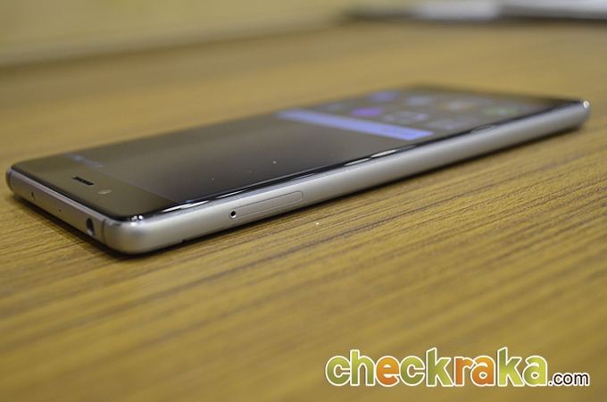 ด้านขวาของตัวเครื่อง เป็นถาดสำหรับใส่ Dual-SIM สามารถใส่ได้ 2 ซิมแบบ NANO SIM