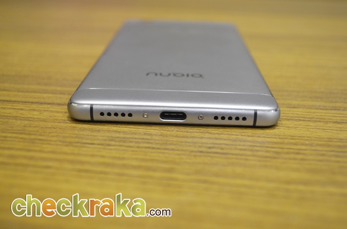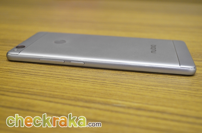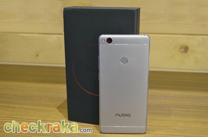 และเซ็นเซอร์สแกนลายนิ้วมือเป็นวงกลมเท่านั้น ถัดลงมาจะมีโลโก้แบรนด์ Nubia