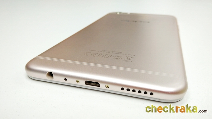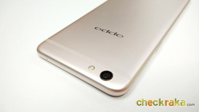 ด้านหลังจะเป็นวัสดุโลหะคลุมไปจนถึงขอบตัวเครื่องด้านข้างไร้รอยต่อ จะมีเสาอากาศเส้นเล็กๆ 3 เส้น ด้านบนและด้านล่าง ดูเนียนตามากครับ ชุดกล้องจะอยู่มุมซ้ายนูนขึ้นมาเล็กน้อย ความละเอียด 16MP ค่ารูรับแสง F1.7 และมีระบบกันสั่น OIS ข้างๆ จะมีไฟแฟลชคู่ LED แบบทูโทน ถัดมาจะเป็นโลโก้ OPPO เงางาม