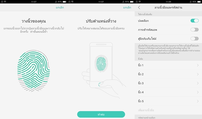 ฟังก์ชั่นสแกนลายนิ้วของรุ่นนี้แม่นยำ และรวดเร็วดีครับสามารถตั้งค่าลายนิ้วมือได้สูงสุด 5 ลายนิ้วมือ