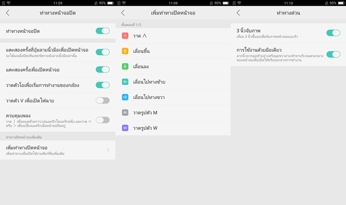 มาพร้อมลูกเล่น Gesture อำนวยความสะดวก อย่างเช่นสามารถเลือกแตะที่ปุ่ม Home สองครั้งเพื่อปลุกหน้าจอ (หรือแตะที่หน้าจอก็ได้) หรือวาดนิ้วเป็นเครื่องหมาย หรือตัวอักษรต่างๆ เพื่อเปิดใช้งานฟังก์ชั่น หรือแอปพลิเคชั่นที่ต้องการ สามารถใช้ 3 นิ้วแตะที่หน้าจอแล้วเลื่อนขึ้นเพื่อจับภาพหน้าจอได้ รวมทั้งโหมดการทำงานมือเดียว เพียงแตะมุมหน้าจอแล้วเลื่อนไปที่กลางจอเท่านั้นเองเป็นต้น ลองใช้งานกันดูนะครับ มีประโยชน์มากๆ