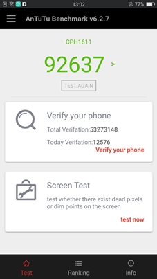 OPPO R9s Plus มาพร้อมชิปเซ็ต Qualcomm Snapdragon 653, CPU Octa-core (4x1.95 GHz Cortex-A72 & 4x1.44 GHz Cortex-A53), GPU Adreno 510, RAM 6GB, หน่วยความจำ 64GB (เพิ่ม Micro SD Card ได้) มาดูคะแนนทดสอบกันครับ