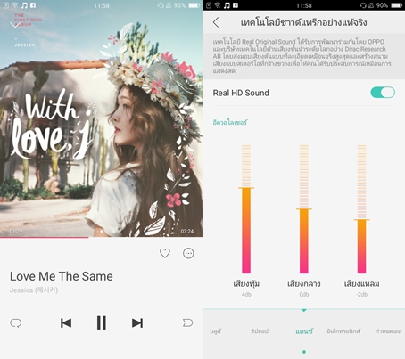 ทดสอบด้วยแอปพลิเคชั่น AnTuTu Benchmark ทำไปได้ 92,637 คะแนน ทดสอบด้วยแอปพลิเคชั่น NenaMark2 ทำไปได้ 60.5 fps ทดสอบสัญญาณ GPS จับสัญญาณได้อย่างรวดเร็วดี 2G GSM 850 / 900 / 1800 / 1900 - SIM 1 & SIM 2 3G HSDPA 850 / 900 / 1900 / 2100 4G LTE band 1(2100), 3(1800), 5(850), 7(2600), 8(900), 20(800), 28(700), 38(2600), 39(1900), 40(2300), 41(2500) ความเร็ว HSPA 42.2/5.76 Mbps, LTE Cat6 300/50 Mbps Wi-Fi 802.11 a/b/g/n/ac, dual-band, WiFi Direct, hotspot Bluetooth 4.1, A2DP, LE NFC GPS, A-GPS microUSB 2.0, USB On-The-Go พอร์ตหูฟังขนาดมาตราฐาน 3.5 มม. เซ็นเซอร์ Fingerprint (front-mounted), accelerometer, gyro, proximity, compass OPPO R9s Plus มาพร้อมเครื่องเล่นเพลงหน้าตาสวย รองรับ Real HD Sound คุณภาพเสียงเพราะทีเดียวครับ คุณภาพดีทั้งผ่านลำโพงและหูฟัง สำหรับรุ่นนี้ไม่มีวิทยุมาให้นะครับ