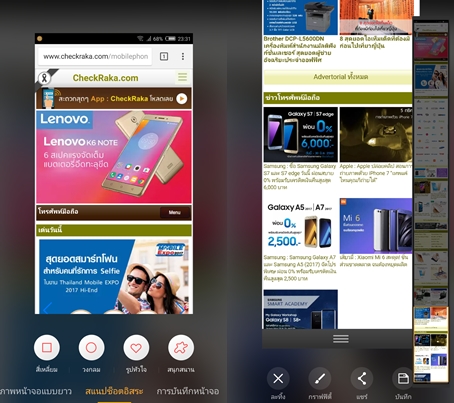 Multi Window หรือการใช้งาน 2 หน้าจอทำได้ง่ายๆ เพียงแค่รูดนิ้วจากด้านล่างหน้าจอขึ้นด้านบนเท่านั้นเอง สามารถปรับขนาดหน้าจอได้ตามใจชอบ และสามารถใช้งานโหมดนี้ได้แม้แต่การเล่นเกม