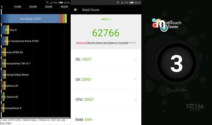 - ทดสอบด้วยแอปพลิเคชั่น AnTuTu Benchmark ทำไปได้ 62,766 คะแนน