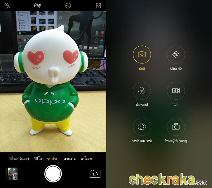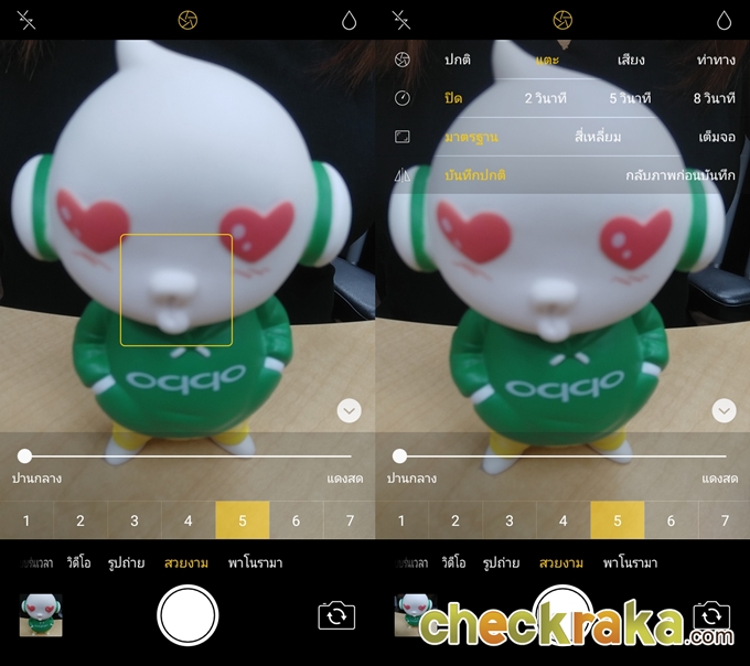 ส่วนกล้องถ่ายภาพนั้นถือว่าเป็นจุดเด่นของเจ้า Oppo A57 ได้เลย โดยเฉพาะกล้องหน้าที่มาพร้อมความละเอียด 16 ล้านพิกเซล f2.0 Beautify 4.0 ซึ่งสามารถปรับ Beautify ได้ถึง 7 ระดับ ยังมีโหมด Bokeh สำหรับถ่ายรูปหน้าชัดหลังเบลอได้ ซึ่งจะเห็นได้ว่าฟังก์ชั่นการใช้งานโหมดถ่ายภาพนั้นยังคงใช้งานง่ายเหมือนเดิม