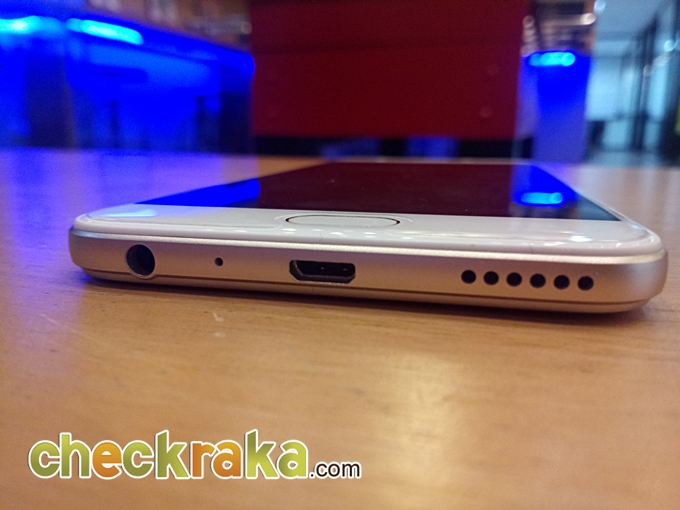 ด้านล่างตัวเครื่อง มีพอร์ท microUSB พอร์ทหูฟัง 3.5 mm. ด้วย ช่องลำโพงเสียงภายนอก และไมค์สนทนา