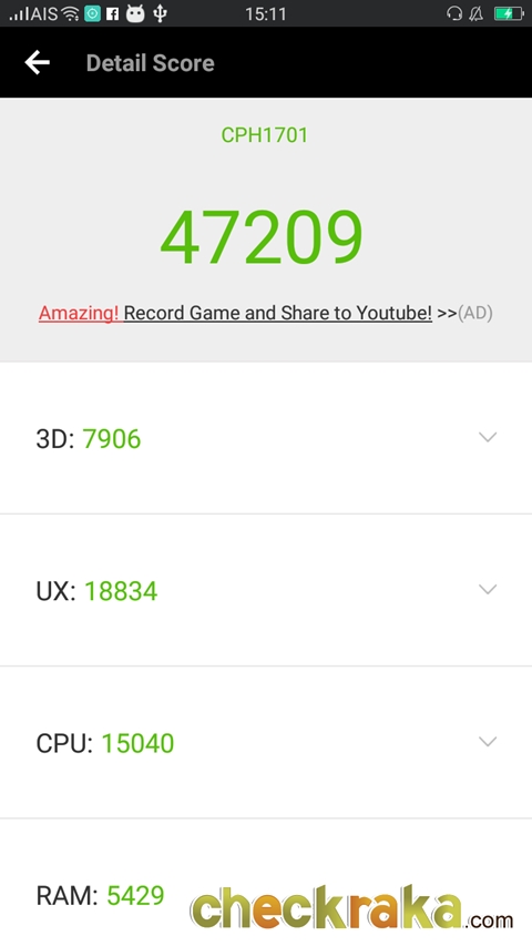 ผลการทดสอบประสิทธิภาพความเร็วด้วย Antutu Benchmark ได้ 47,209 คะแนน