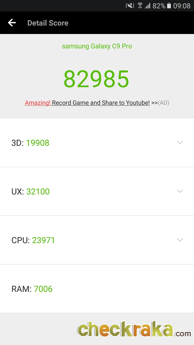 ผลการทดสอบประสิทธิภาพความเร็วด้วย Antutu Benchmark ได้ 82985 คะแนน