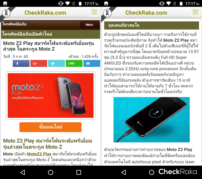 Moto Z2 Play สมาร์ทโฟนรุ่นใหม่จากทาง Motorola ซึ่งถือว่าเป็นรุ่นต่อยอดใหม่ล่าสุดจากตระกูล Z-Series วันนี้ทาง Checkraka.com นั้นจะมารีวิวให้ทุกคนได้อ่านกัน ไปดูกันเลยดีกว่าค่ะ...
