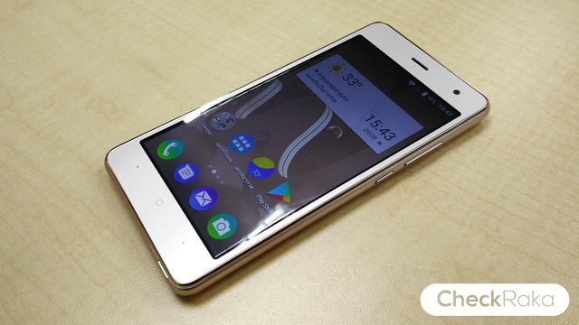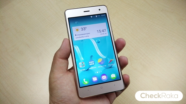 ตัวเครื่องมาพร้อมหน้าจอ IPS ขนาด 5 นิ้ว ความละเอียด FWVGA (480 x 854 pixels 196 PPI) หน้าจอความละเอียดไม่สูง จึงขาดความคม แต่สีสันดูสวยงามใช้ได้เลยครับ และความสว่างเพียงพอต่อการใช้งาน เวลาใช้งานกลางแจ้งยังพอใช้ได้ มุมมองหน้าจอกว้างพอสมควร ถือว่ามีหน้าจอที่สวยกว่าที่คาดเอาใว้ในตอนแรกนะครับ ด้านบนจะมีลำโพงสนทนา และกล้องหน้าความละเอียด 5MP ส่วนด้านล่างจะเป็นปุ่มสัมผัส ประกอบด้วย Back, Home และ Recent App