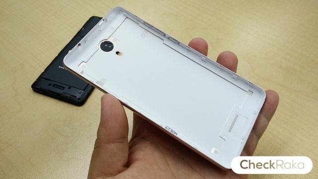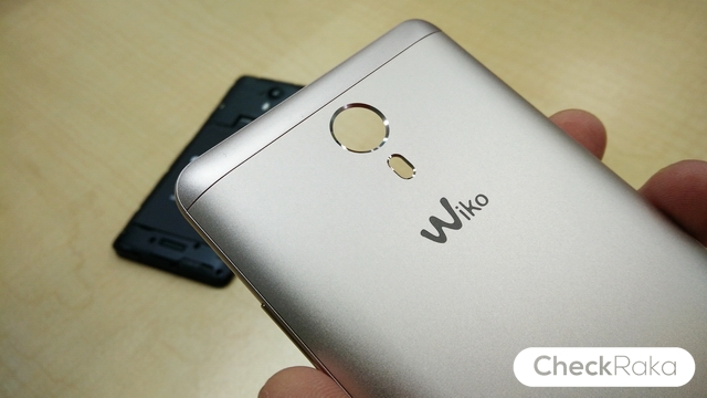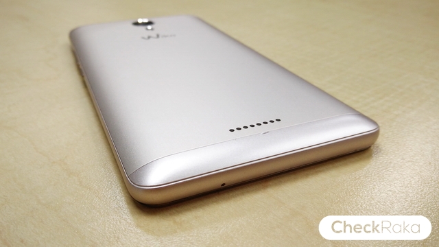 ฝาหลังจะเป็นวัสดุโลหะแล้วบุด้วยพลาสติก ส่วนด้านบนและด้านล่างจะเป็นพลาสติก (เป็นโลหะเฉพาะตรงกลาง) สามารถถอดออกได้ วิธีถอดต้องถอดออกมาทั้งหมด รวมทั้งขอบตัวเครื่องก็ต้องถอดออกมาทั้งชิ้น ค่อนข้างถอดยากพอสมควรครับ โดยจะมีร่องสำหรับแกะฝาหลังอยู่ที่ด้านล่างตัวเครื่อง ภายในช่องใส่ซิมการ์ด และช่องใส่ MicroSD จะแยกออกจากกัน ด้านหลังจะมีกล้องความละเอียด 5MP และไฟแฟลช LED ถัดลงมาจะเป็นโลโก้ Wiko ที่ยิงด้วยเลเซอร์ และด้านล่างจะเป็นลำโพง เสียงดังใช้ได้แต่ฟังดูก้องๆ ครับไม่ใส