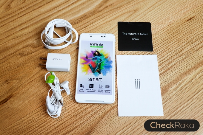 Infinix Smart ตัวกล่องจะมีสีสันสดใส ภายในกล่องจะมีอุปกรณ์ดังต่อไปนี้