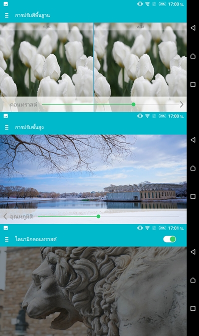 ในส่วนของ App Toggle สามารถปรับแต่งได้เอง และมีตัวเลือกให้ครบถ้วนเลยครับ รองรับการปรับแสงสว่างหน้าจออัตโนมัติด้วย ซึ่งปกติสมาร์ทโฟนราคาประหยัดหลายๆ รุ่นเลยที่ตัดออกไป และรุ่นนี้รองรับเทคโนโลยีการปรับแต่งหน้าจอ Mira Vision โดยเราสามารถปรับแต่งหน้าจอได้อย่างละเอียด หรือจะเลือกการแสดงเอฟเฟ็กต์หน้าจอแบบมาตรฐานได้ถึง 3 รูปแบบ ในส่วนของการปรับแต่งอย่างละเอียด เราจะสามารถปรับแต่งได้ทั้งในส่วนของคอนทราสต์, ความอิ่มตัว, ความสว่าง, ความคมชัด, โทนสี และสามารถปรับค่าคอนทราสต์ ในส่วนของการแสดงวีดีโอได้อีกด้วย นอกจากนี้ยังรองรับโหมดป้องกันการเปิดหน้าจอโดยที่เราไม่ตั้งใจ เมื่ออยู่ในกระเป๋า