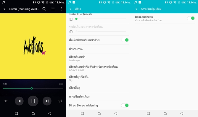 Infinix Smart มาพร้อมระบบเสียง Direc Stereo Widening (3D Stereo surrounding) ซึ่งไม่ใช่เพียงลำโพงคู่ แต่รองรับระบบเสียงนี้ผ่านหูฟังด้วยครับ ผมได้ทดสอบด้วยหูฟัง Klipsch R6 เสียงที่ได้ค่อนข้างดีเลยครับ เกินความคาดหมายมากๆ จะติก็ตรงเสียงดูทึบ และเบสฟุ้งๆ ไปหน่อยครับ