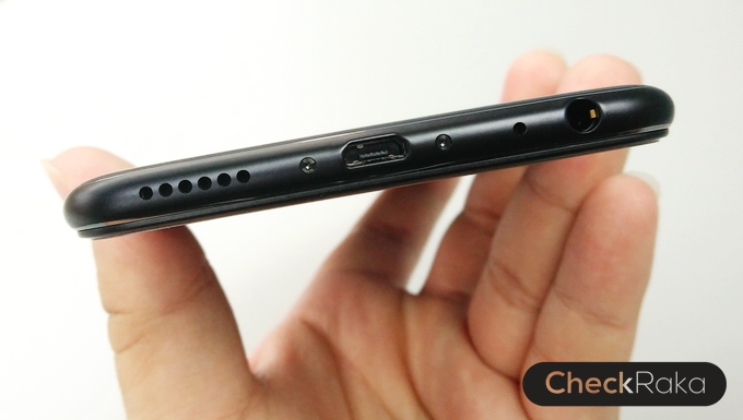 ด้านบนมีไมค์ตัดเสียงรบกวน ส่วนด้านล่างจะมีพอร์ทหูฟังขนาด 3.5 มม., ไมโครโฟน, พอร์ท MicroUSB 2.0 และลำโพง (เสียงลำโพงรุ่นนี้ดังดีครับ และไม่แตก)