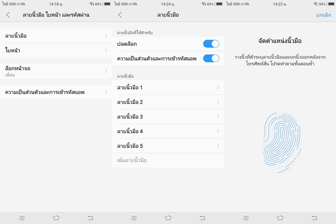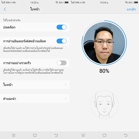 เซ็นเซอร์สแกนลายนิ้วมือ รองรับสูงสุด 5 ลายนิ้วมือ นอกจากนี้ Vivo V7+ ยังรองรับ Face Access สแกนใบหน้าอีกด้วย ความแม่นยำทำได้ดีมาก