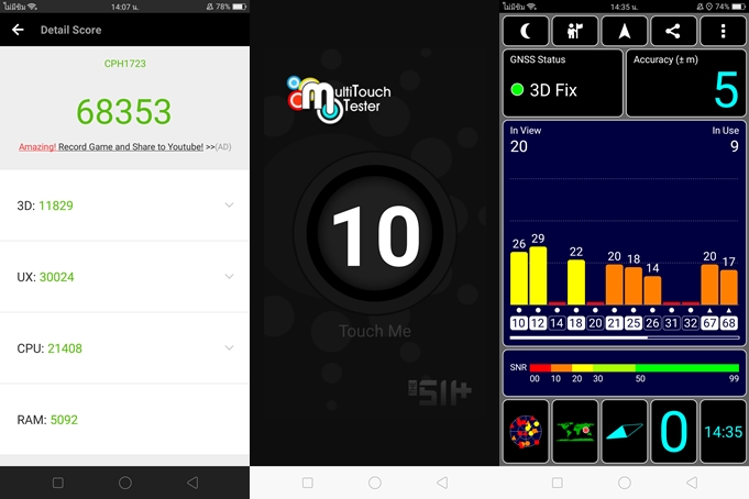 - ทดสอบด้วยแอปพลิเคชั่น AnTuTu Benchmark ทำไปได้ 68,353 คะแนน