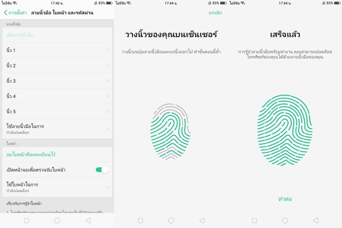 เซ็นเซอร์สแกนลายนิ้วมือ สามารถตั้งค่าลายนิ้วมือได้ถึง 5 ลายนิ้วมือ ความแม่นยำและความรวดเร็วทำได้ดีมาก นอกจากนี้ยังมี Facial Unlock ฟีเจอร์สแกนใบหน้า ความเร็วและความแม่นยำทำได้ดีครับ ผมลองเอาเสื้อขึ้นมาปิดปากปิดจมูก มันก็ยังสแกนผ่าน เวลาสแกนเราต้องเปิดหน้าจอขึ้นมาก่อนนะครับ ไม่สามารถหยิบขึ้นมาสแกนทั้งๆ ที่หน้าจอดับอยู่ได้
