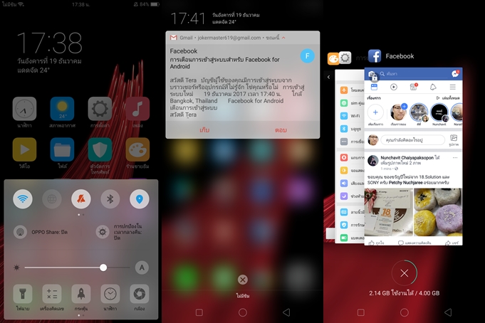 OPPO F5 ทำงานบน Android 7.1 Nougat ครอบทับด้วย ColorOS 3.2 ด้วยหน้าจอมาตรฐานใหม่ 18:9 ทำให้หน้าตา UI เปลี่ยนแปลงไปพอสมควร สำหรับไอค่อนต่างๆ จะเรียงจากด้านบนลงมาครับ และย้ายหน้า Quick Toggle มาอยู่ด้านล่าง และด้านบนจะเป็น Notification มีฟังก์ชั่น Lockscreen Magazine & Wallpaper ซึ่งสามารถตั้งอัพเดทหน้า Locksceen ให้มีภาพใหม่ๆ มาแสดงโดยอัตโนมัติเหมือนเดิม ต้องบอกว่าแฟนๆ OPPO อาจจะต้องปรับตัวกันเล็กน้อย ทำออกมาดีครับ ความเร็วและความลื่นไหลโอเคเลยละ ต้องชมเรื่องสเปคด้วยที่รุ่นนี้จัดมาน่าใช้ทีเดียว (รุ่น OPPO F5 RAM 6GB ผมว่าความลื่นน่าจะไม่หนีกัน แต่จะเห็นผลตอนเล่นเกม หรือใช้ฟีเจอร์ Multi Window)
