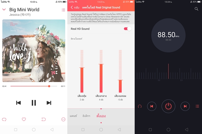 OPPO F5 มาพร้อม Real HD Sound เสียงดีเลยละครับ แถมมีวิทยุมาให้ด้วยนะ (แต่บันทึกเสียงเก็บไว้ไม่ได้นะครับ) และทดลองเล่นไฟล์ความละเอียด Full HD สามารถเล่นได้อย่างลื่นไหล และสามารถปรับอัตราส่วนเต็มหน้าจอ 18:9 ได้ครับ โดยมีการตัดตกภาพหน้าจอเล็กน้อย