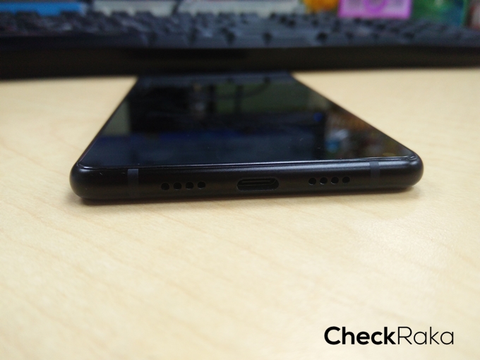 ด้านล่างมี มีลำโพง, ไมโครโฟน ตรงกลางเป็นพอร์ต USB Type-C