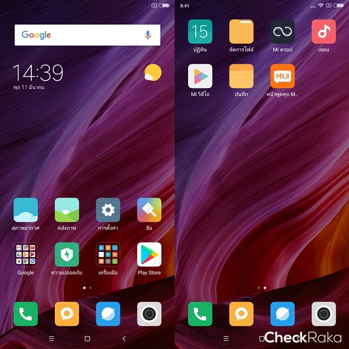 ในส่วนของแถบการแจ้งเตือนสามารถดูการแจ้งเตือนด้วยการลากนิ้วจากด้านบนลงมาด้านล่าง และเมื่อเลื่อนลงมาอีกครั้งจะเป็นแถบการตั้งค่าด่วน ซึ่งการใช้งานก็จะเหมือนกับสมาร์ทโฟน Android ทั่วไป แต่ด้านการดีไซน์ไอคอนต่างๆ ที่เป็นเอกลักษณ์ สำหรับ Xiaomi Mi MIX 2 มาพร้อมแอปพลิเคชั่นที่ชื่อว่า ธีม เพิ่มเข้ามาด้วย ซึ่งการใช้งานทำให้ผู้ใช้งานสามารถเลือกดาวน์โหลดธีมและภาพพื้นหลังมาเปลี่ยนได้เองตามใจชอบ