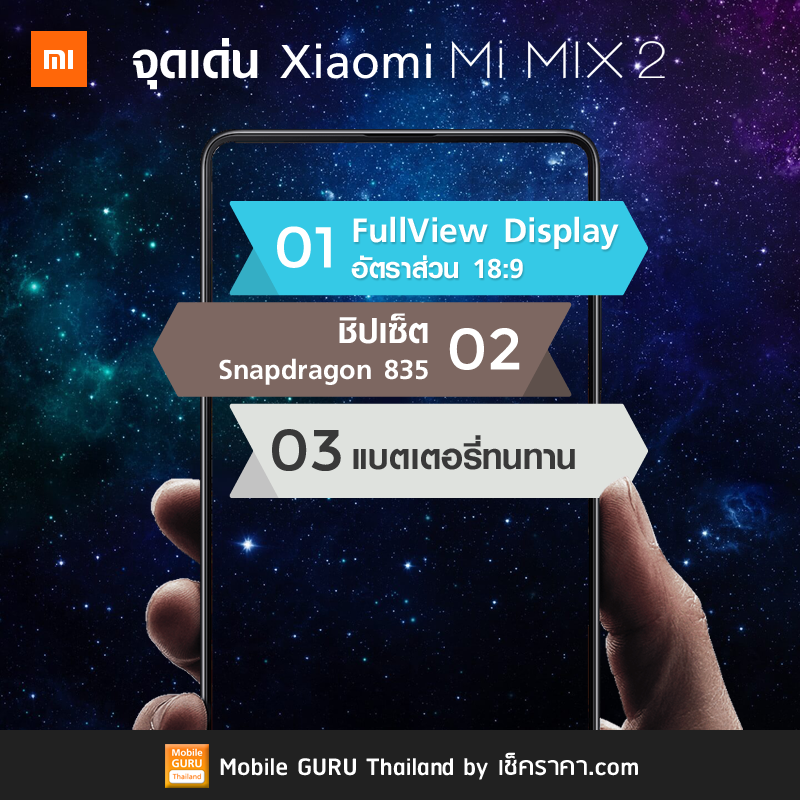 XIAOMI MI MIX 2 แม้จะข้ามปีมาแล้วแต่ก็ยังดูมีความน่าสนใจอยู่ไม่น้อยเลยทีเดียว โดยรุ่นนี้มาพร้อมกับการเปลี่ยนแปลงจากรุ่นเดิมที่มีลงตัวมากขึ้น พร้อมราคาที่น่าจับต้อง จนเราอดใจไม่ไหวที่หยิบเครื่องนี้มารีวิว นอกจากจะมาพร้อมหน้าจอที่ไร้ขอบด้วยอัตราส่วน 18:9 แล้ว ในส่วนของรายละเอียดสเปคนั้นก็น่าสนใจไม่แพ้กัน มาดูกันดีกว่า...