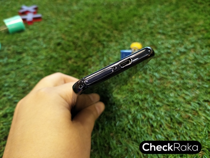 ด้านล่างมีช่องเสียบ Micro USB สำหรับชาร์จไฟ และถาดใส่ซิม