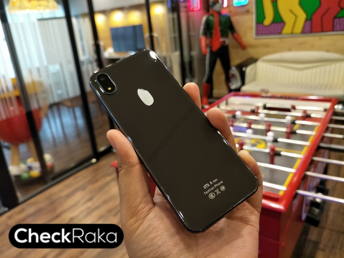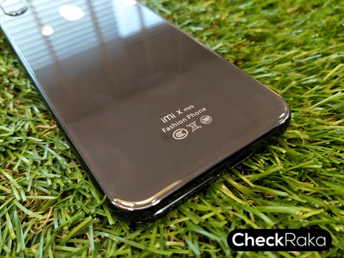 ด้านหลังมุมซ้ายด้านบนมีกล้องดิจิทัล พร้อมไฟแฟลช LED ถัดลงมาตรงกลางมีโลโก้ imi ด้านล่างมีชื่อรุ่น iMi X mini