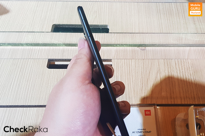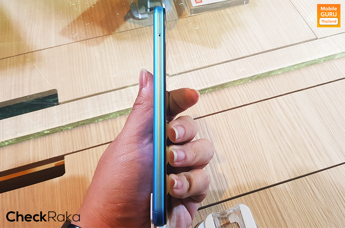 ด้านซ้ายของตัวเครื่อง มีช่องถาดสำหรับใส่ซิมการ์ดแบบ Triple Slot สามารถใส่ซิมการ์ด 2 ซิมพร้อม MicroSD Card ได้