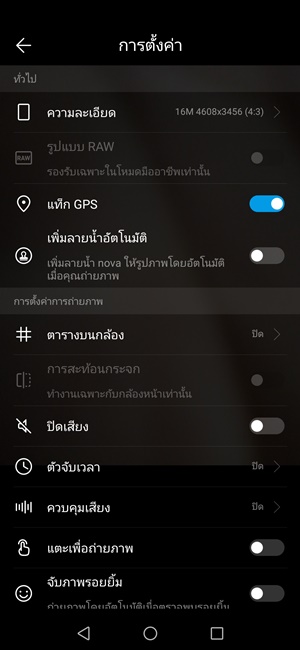 รายละเอียดการตั้งค่ากล้องถ่ายรูปบน Huawei Nova 3i